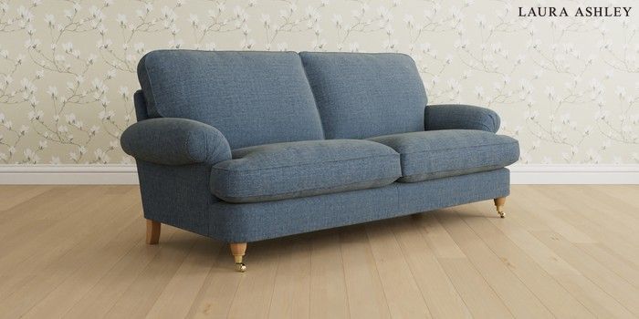 6.12.1 Buy Beaumaris by Laura Ashley 3 Seater Sofa Orla Seaspray Blue Low Brass Castor - Light Oak from the Next UK online shop Click here to use our accessible website