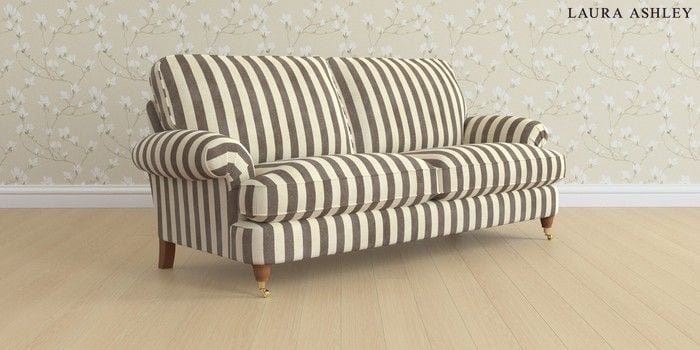 6.12.1 Buy Beaumaris by Laura Ashley 3 Seater Sofa Orla Stripe Dark Truffle Natural Low Brass Castor - Teak from the Next UK online shop Click here to use our accessible website