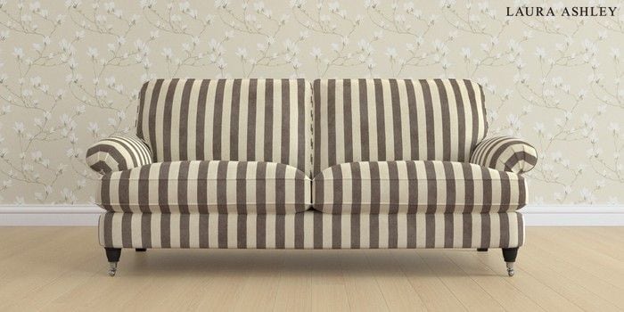 6.12.13 Buy Beaumaris by Laura Ashley 3 Seater Sofa Orla Stripe Dark Truffle Natural Low Chrome Castor - Black from the Next UK online shop Click here to use our accessible website