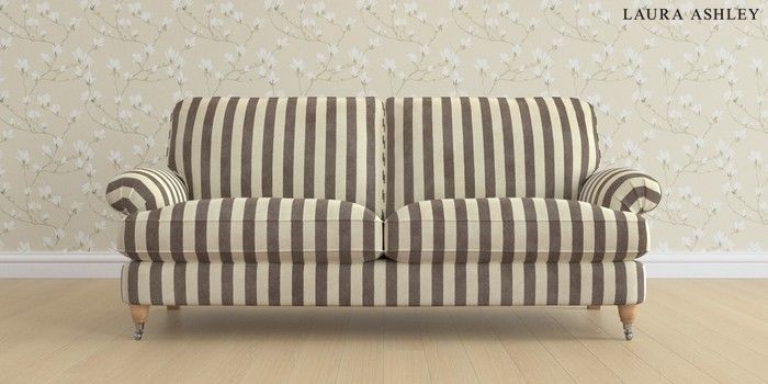 6.12.13 Buy Beaumaris by Laura Ashley 3 Seater Sofa Orla Stripe Dark Truffle Natural Low Chrome Castor - Light Oak from the Next UK online shop Click here to use our accessible website