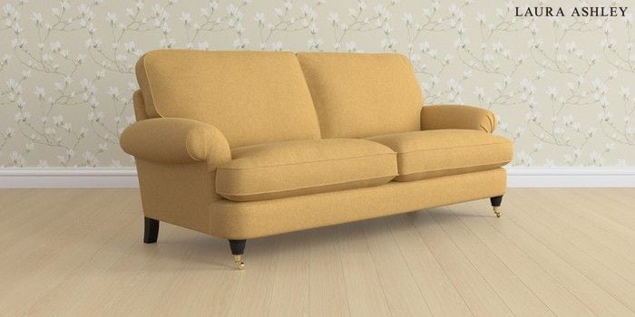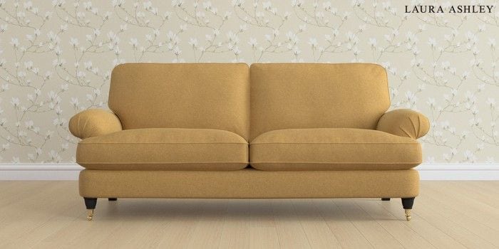 6.12.1 Buy Beaumaris by Laura Ashley 3 Seater Sofa Peyton Ochre Yellow Low Brass Castor - Black from the Next UK online shop Click here to use our accessible website