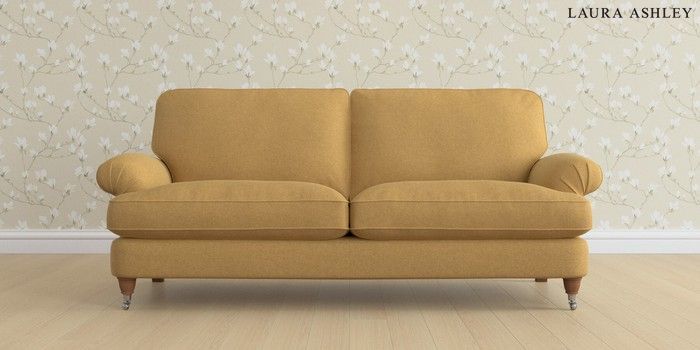 6.12.13 Buy Beaumaris by Laura Ashley 3 Seater Sofa Peyton Ochre Yellow Low Chrome Castor - Teak from the Next UK online shop Click here to use our accessible website