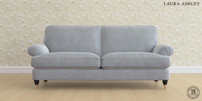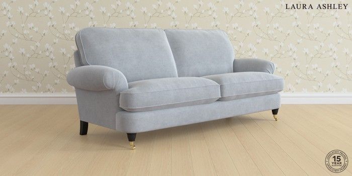 6.12.1 Buy Beaumaris by Laura Ashley 3 Seater Sofa Peyton Powder Blue Low Brass Castor - Black from the Next UK online shop Click here to use our accessible website