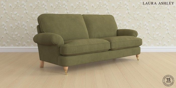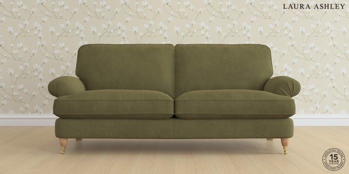 6.12.1 Buy Beaumaris by Laura Ashley 3 Seater Sofa Sinclair Cord Ivy Green Low Brass Castor - Light Oak from the Next UK online shop Click here to use our accessible website