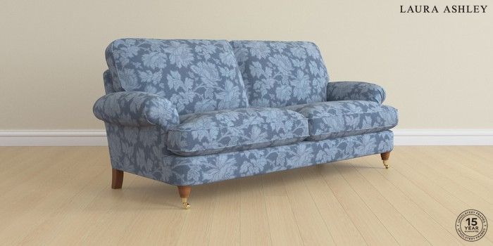 6.12.1 Buy Beaumaris by Laura Ashley 3 Seater Sofa Tamara Dusky Seaspray Blue Low Brass Castor - Teak from the Next UK online shop Click here to use our accessible website