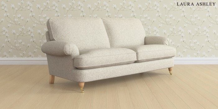 6.12.1 Buy Beaumaris by Laura Ashley 3 Seater Sofa Tichwell Stone Natural Low Brass Castor - Light Oak from the Next UK online shop Click here to use our accessible website