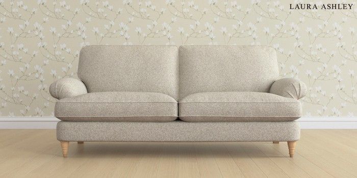 6.12.1 Buy Beaumaris by Laura Ashley 3 Seater Sofa Tichwell Stone Natural Low Turned - Light Oak from the Next UK online shop Click here to use our accessible website