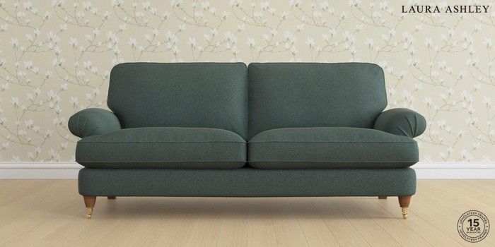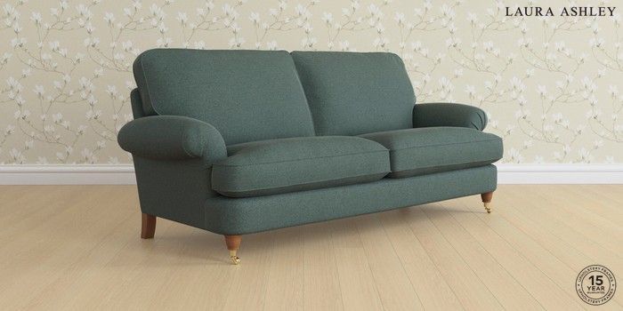 6.12.1 Buy Beaumaris by Laura Ashley 3 Seater Sofa Wooton Forest Green Low Brass Castor - Teak from the Next UK online shop Click here to use our accessible website