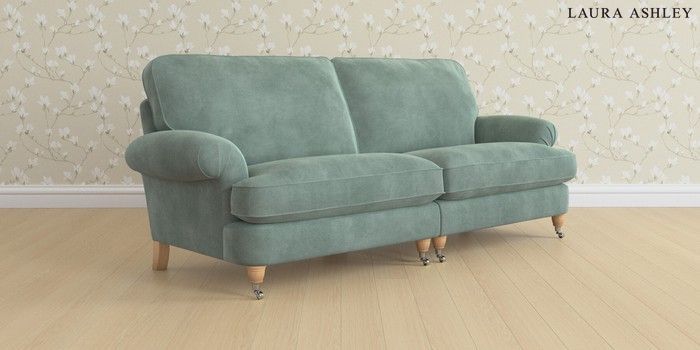 6.12.13 Buy Beaumaris by Laura Ashley 4 Seater Sofa Ailsworth Fern Green Low Chrome Castor - Light Oak from the Next UK online shop Click here to use our accessible website