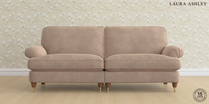 6.12.1 Buy Beaumaris by Laura Ashley 4 Seater Sofa Ailsworth Mink Natural Low Brass Castor - Teak from the Next UK online shop Click here to use our accessible website