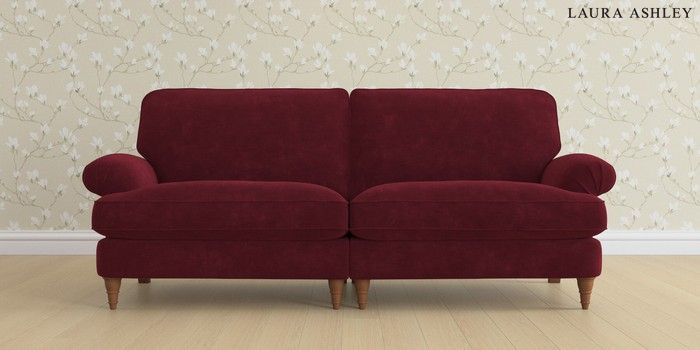 6.12.1 Buy Beaumaris by Laura Ashley 4 Seater Sofa Alwyn Velvet Burgundy Red Low Turned - Teak from the Next UK online shop Click here to use our accessible website