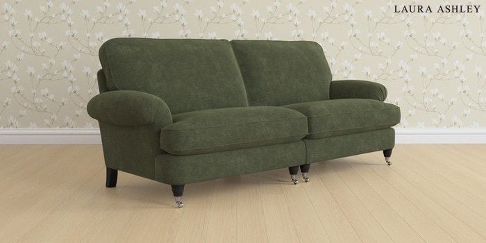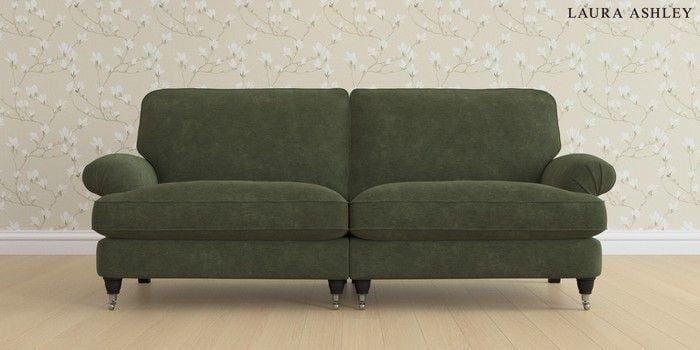 6.12.1 Buy Beaumaris by Laura Ashley 4 Seater Sofa Alwyn Velvet Ivy Green Low Chrome Castor - Black from the Next UK online shop Click here to use our accessible website