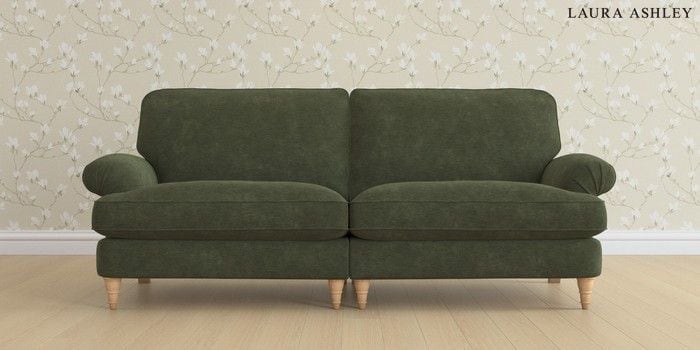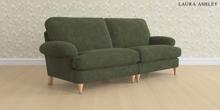 6.12.1 Buy Beaumaris by Laura Ashley 4 Seater Sofa Alwyn Velvet Ivy Green Low Turned - Light Oak from the Next UK online shop Click here to use our accessible website