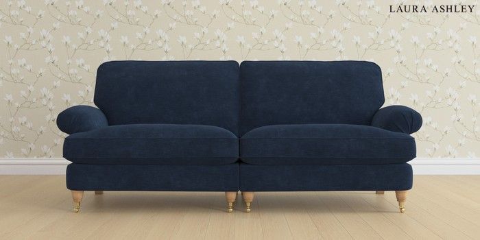 6.12.1 Buy Beaumaris by Laura Ashley 4 Seater Sofa Alwyn Velvet Midnight Navy Low Brass Castor - Light Oak from the Next UK online shop Click here to use our accessible website