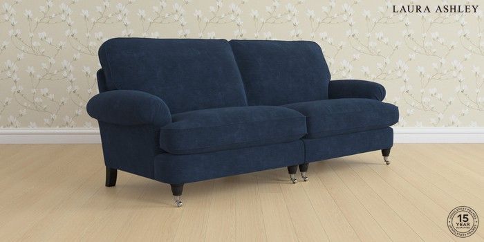 6.12.1 Buy Beaumaris by Laura Ashley 4 Seater Sofa Alwyn Velvet Midnight Navy Low Chrome Castor - Black from the Next UK online shop Click here to use our accessible website
