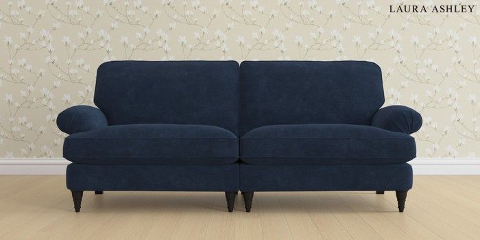 6.12.1 Buy Beaumaris by Laura Ashley 4 Seater Sofa Alwyn Velvet Midnight Navy Low Turned - Black from the Next UK online shop Click here to use our accessible website