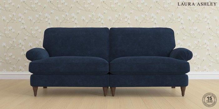 6.12.1 Buy Beaumaris by Laura Ashley 4 Seater Sofa Alwyn Velvet Midnight Navy Low Turned - Chestnut from the Next UK online shop Click here to use our accessible website