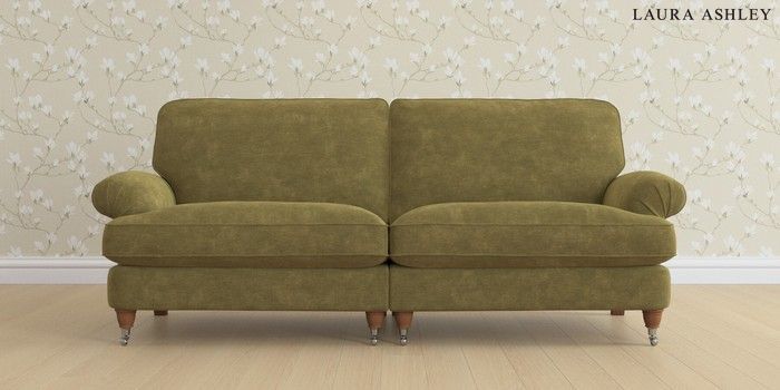 6.12.1 Buy Beaumaris by Laura Ashley 4 Seater Sofa Alwyn Velvet Olive Green Low Chrome Castor - Teak from the Next UK online shop Click here to use our accessible website