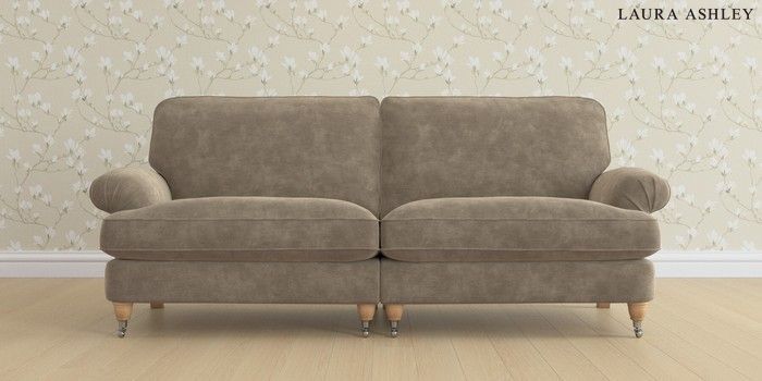 6.12.1 Buy Beaumaris by Laura Ashley 4 Seater Sofa Alwyn Velvet Truffle Natural Low Chrome Castor - Light Oak from the Next UK online shop Click here to use our accessible website