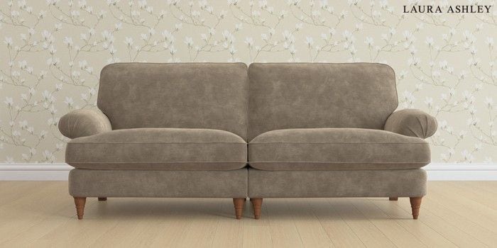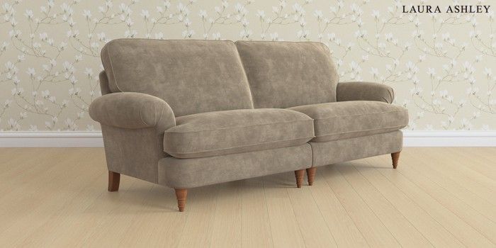 6.12.1 Buy Beaumaris by Laura Ashley 4 Seater Sofa Alwyn Velvet Truffle Natural Low Turned - Teak from the Next UK online shop Click here to use our accessible website