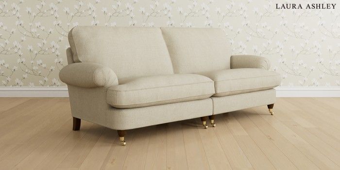 6.12.1 Buy Beaumaris by Laura Ashley 4 Seater Sofa Anneliese Natural Low Brass Castor - Teak from the Next UK online shop Click here to use our accessible website