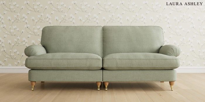6.12.1 Buy Beaumaris by Laura Ashley 4 Seater Sofa Anneliese Sage Green Low Brass Castor - Light Oak from the Next UK online shop Click here to use our accessible website