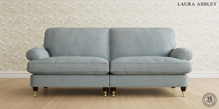 6.12.1 Buy Beaumaris by Laura Ashley 4 Seater Sofa Anneliese Seaspray Blue Low Brass Castor - Chestnut from the Next UK online shop Click here to use our accessible website