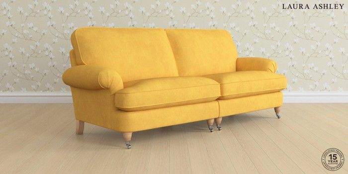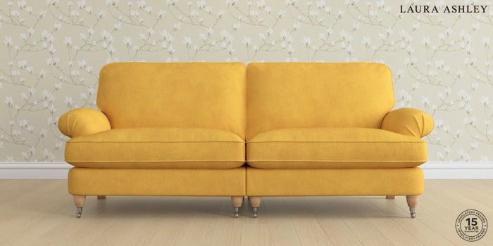 6.12.1 Buy Beaumaris by Laura Ashley 4 Seater Sofa Bainton Ochre Yellow Low Chrome Castor - Light Oak from the Next UK online shop Click here to use our accessible website