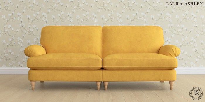 6.12.1 Buy Beaumaris by Laura Ashley 4 Seater Sofa Bainton Ochre Yellow Low Turned - Light Oak from the Next UK online shop Click here to use our accessible website