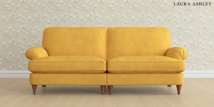 6.12.1 Buy Beaumaris by Laura Ashley 4 Seater Sofa Bainton Ochre Yellow Low Turned - Teak from the Next UK online shop Click here to use our accessible website