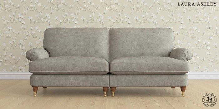 6.12.13 Buy Beaumaris by Laura Ashley 4 Seater Sofa Bainton Pale Steel Grey Low Brass Castor - Teak from the Next UK online shop Click here to use our accessible website