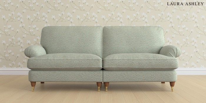 6.12.1 Buy Beaumaris by Laura Ashley 4 Seater Sofa Borwick Newport Blue Low Brass Castor - Teak from the Next UK online shop Click here to use our accessible website