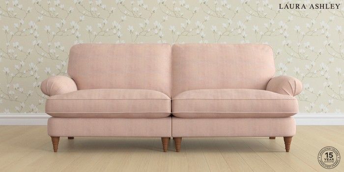 6.12.1 Buy Beaumaris by Laura Ashley 4 Seater Sofa Edwin Chenille Blush Pink Low Turned - Teak from the Next UK online shop Click here to use our accessible website