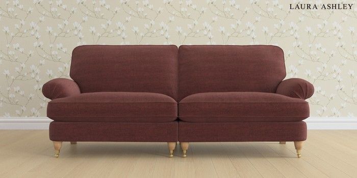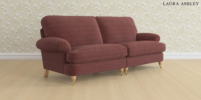 6.12.1 Buy Beaumaris by Laura Ashley 4 Seater Sofa Edwin Chenille Burgundy Red Low Brass Castor - Light Oak from the Next UK online shop Click here to use our accessible website