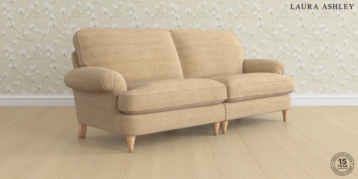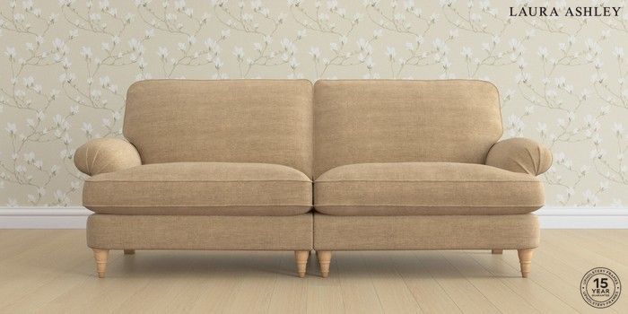6.12.1 Buy Beaumaris by Laura Ashley 4 Seater Sofa Edwin Chenille Gold Natural Low Turned - Light Oak from the Next UK online shop Click here to use our accessible website