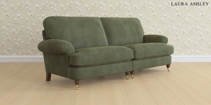 6.12.1 Buy Beaumaris by Laura Ashley 4 Seater Sofa Edwin Chenille Hedgerow Green Low Brass Castor - Chestnut from the Next UK online shop Click here to use our accessible website