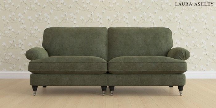 6.12.13 Buy Beaumaris by Laura Ashley 4 Seater Sofa Edwin Chenille Hedgerow Green Low Chrome Castor - Black from the Next UK online shop Click here to use our accessible website