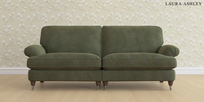 6.12.13 Buy Beaumaris by Laura Ashley 4 Seater Sofa Edwin Chenille Hedgerow Green Low Chrome Castor - Chestnut from the Next UK online shop Click here to use our accessible website