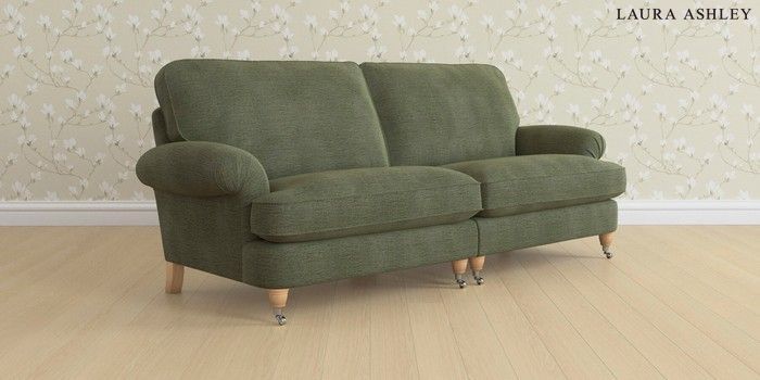 6.12.13 Buy Beaumaris by Laura Ashley 4 Seater Sofa Edwin Chenille Hedgerow Green Low Chrome Castor - Light Oak from the Next UK online shop Click here to use our accessible website