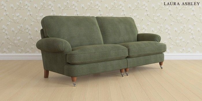 6.12.13 Buy Beaumaris by Laura Ashley 4 Seater Sofa Edwin Chenille Hedgerow Green Low Chrome Castor - Teak from the Next UK online shop Click here to use our accessible website