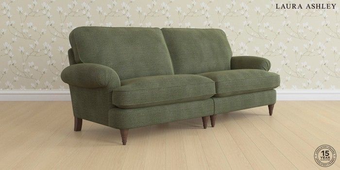 6.12.13 Buy Beaumaris by Laura Ashley 4 Seater Sofa Edwin Chenille Hedgerow Green Low Turned - Chestnut from the Next UK online shop Click here to use our accessible website