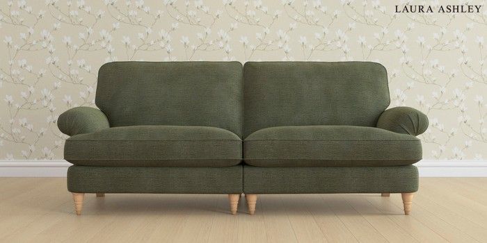 6.12.13 Buy Beaumaris by Laura Ashley 4 Seater Sofa Edwin Chenille Hedgerow Green Low Turned - Light Oak from the Next UK online shop Click here to use our accessible website