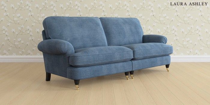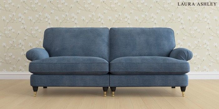 6.12.1 Buy Beaumaris by Laura Ashley 4 Seater Sofa Edwin Chenille Seaspray Blue Low Brass Castor - Black from the Next UK online shop Click here to use our accessible website