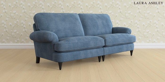 6.12.1 Buy Beaumaris by Laura Ashley 4 Seater Sofa Edwin Chenille Seaspray Blue Low Turned - Black from the Next UK online shop Click here to use our accessible website