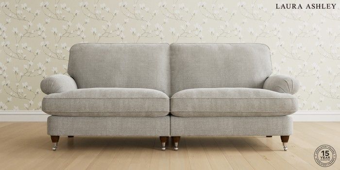 6.12.1 Buy Beaumaris by Laura Ashley 4 Seater Sofa Edwin Chenille Silver Grey Low Chrome Castor - Teak from the Next UK online shop Click here to use our accessible website