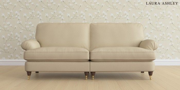 6.12.1 Buy Beaumaris by Laura Ashley 4 Seater Sofa Edwin Herringbone Natural Low Brass Castor - Chestnut from the Next UK online shop Click here to use our accessible website
