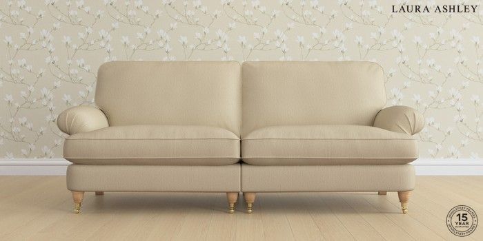 6.12.1 Buy Beaumaris by Laura Ashley 4 Seater Sofa Edwin Herringbone Natural Low Brass Castor - Light Oak from the Next UK online shop Click here to use our accessible website