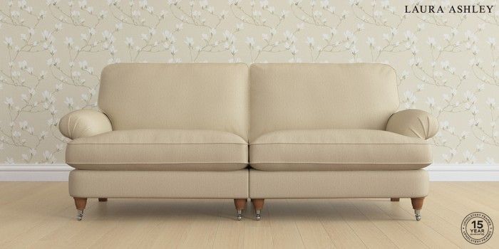 6.12.1 Buy Beaumaris by Laura Ashley 4 Seater Sofa Edwin Herringbone Natural Low Chrome Castor - Teak from the Next UK online shop Click here to use our accessible website
