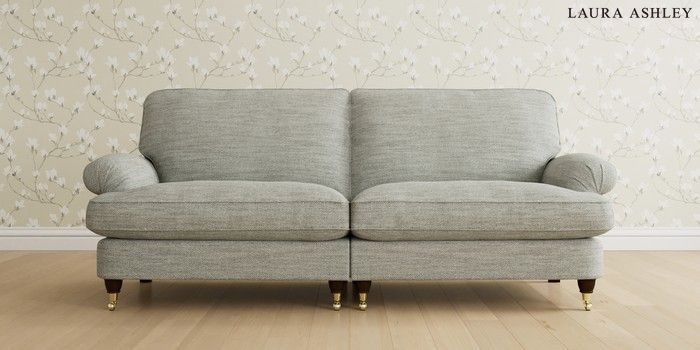 6.12.1 Buy Beaumaris by Laura Ashley 4 Seater Sofa Harley Dove Grey Low Brass Castor - Chestnut from the Next UK online shop Click here to use our accessible website