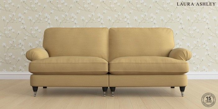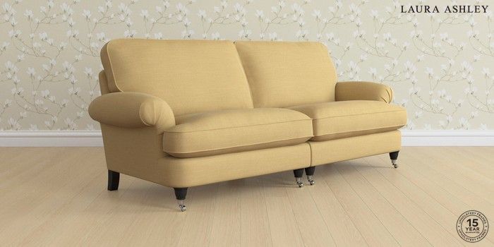 6.12.1 Buy Beaumaris by Laura Ashley 4 Seater Sofa Kinsham Ochre Yellow Low Chrome Castor - Black from the Next UK online shop Click here to use our accessible website